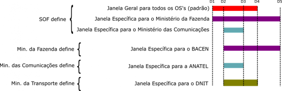 A SOF define uma janela de trabalho geral para todos os órgãos e/ou janelas específicas para cada órgão. A janela de trabalho geral vale para todos os órgãos que não possuam uma janela específica definida.