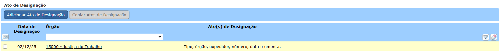 Assim, o novo ato será exibido na tela de consulta de atos de designação.