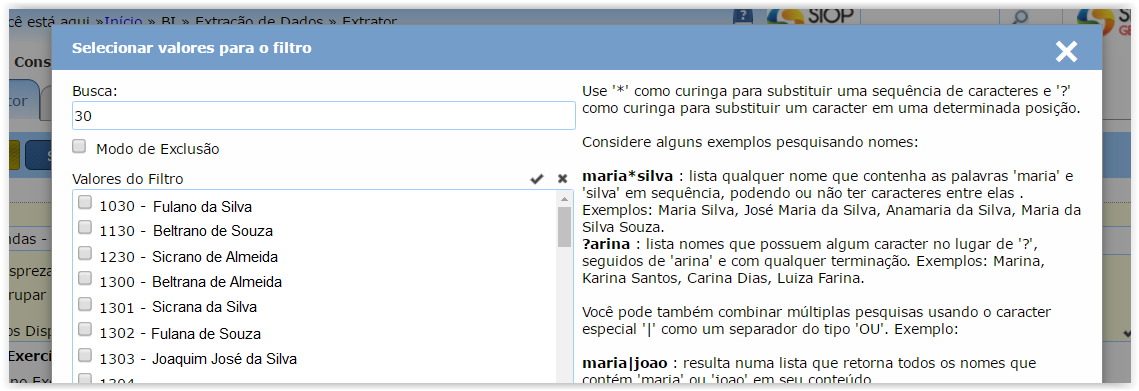 O melhor meio para consultar informações do SIOP é o aplicativo extrator do BI (Business Intelligence), disponível no menu do SIOP tradicional.