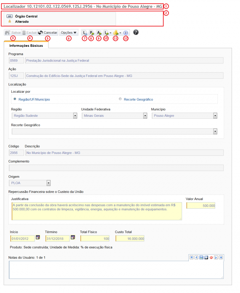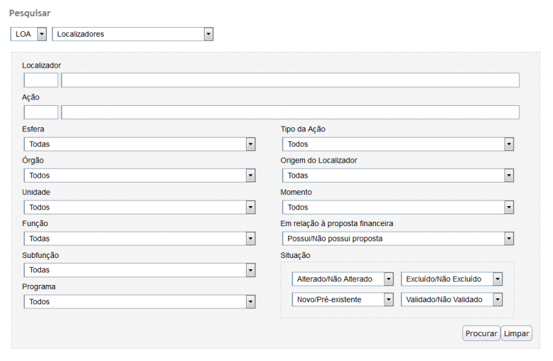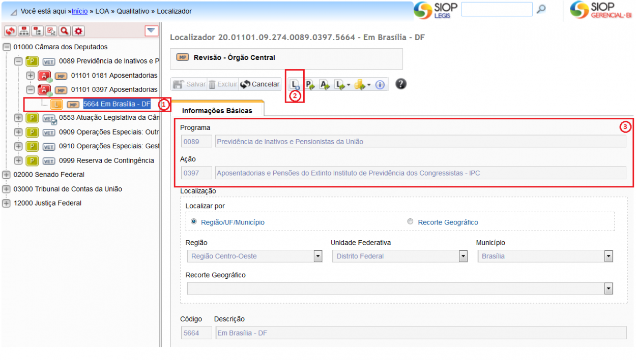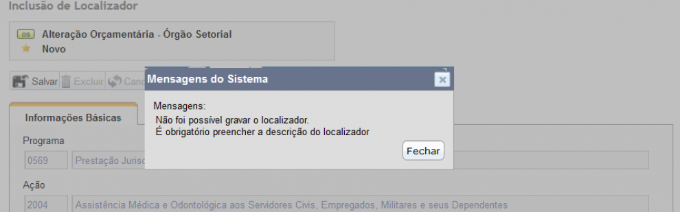 Nova: o Localizador não constava da base de partida e foi incluído durante o processo de elaboração do PLOA;