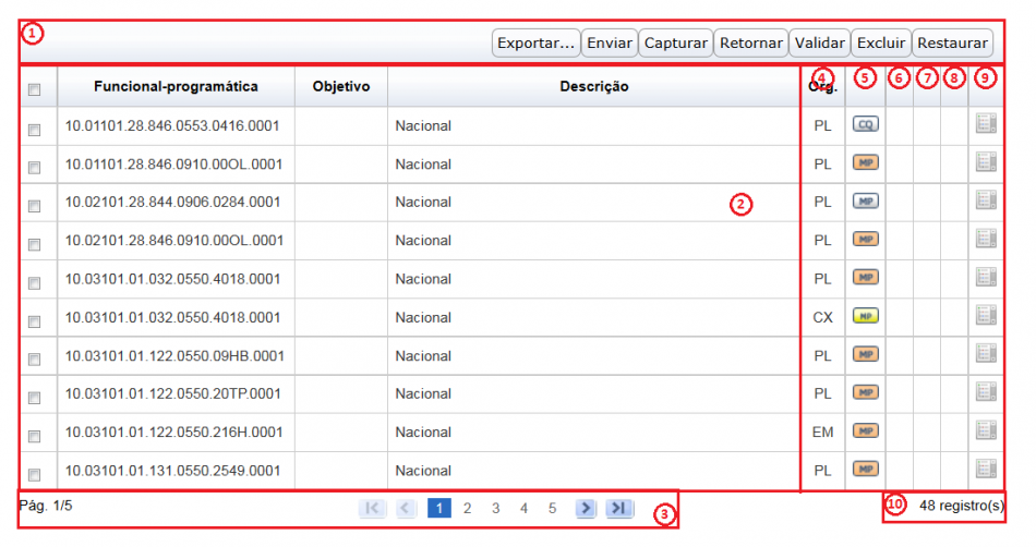 ( 5 ) → Procurar: Efetua a pesquisa mediante os parâmetros informados no filtro.