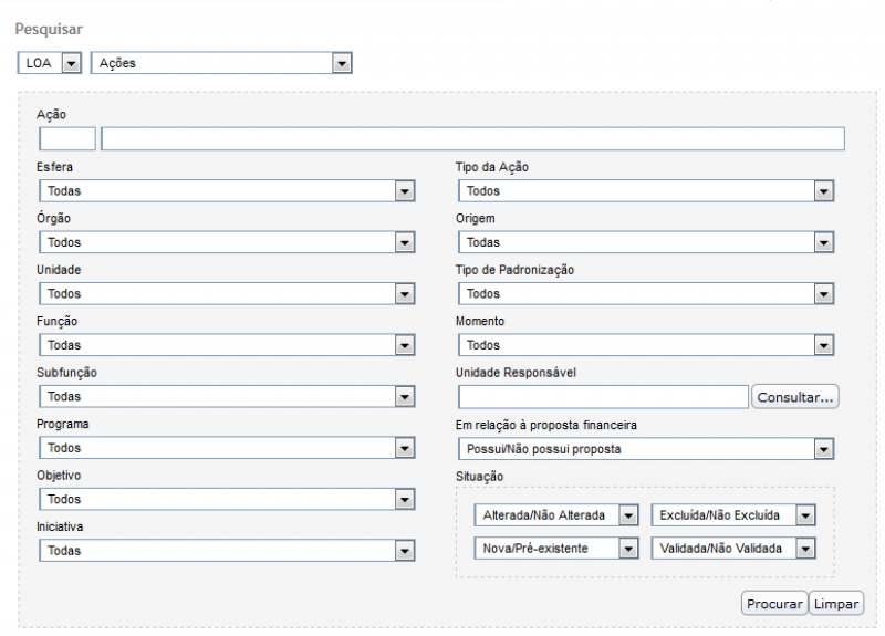 • Objetivo: Mostra, quando houver, o objetivo vinculado à ação. Até 2015 essa coluna era intitulada Iniciativa