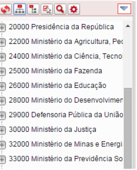 • 2 - Visão Institucional da Árvore. Exibe a árvore de acordo com os órgãos associados ao perfil do usuário. A forma de exibição é: