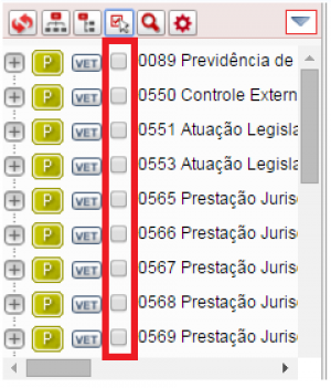 • 4 - Ativar/Desativar marcação de itens na árvore. Permite a execução de operações disponíveis no menu de ações