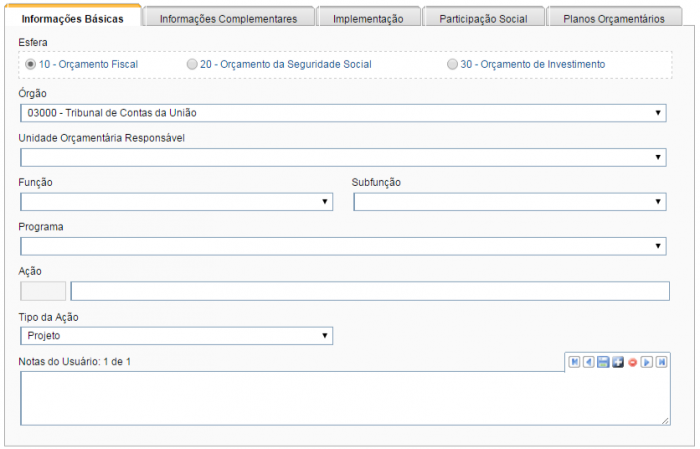 1.1 Ação, Localizador e Plano Orçamentário